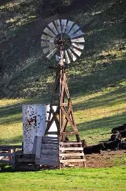 So, imagine with me – A cowboy rides up to the windmill with his trusted steed, on a hot July day, and they are both thirsty. The horse sticks his nose into the tank and begins to enjoy the cool, fresh water. The cowboy grabs the tin-cup nailed in the tower and gets himself a drink of cool, fresh water by placing the cup under the waterspout that is filling the tank.