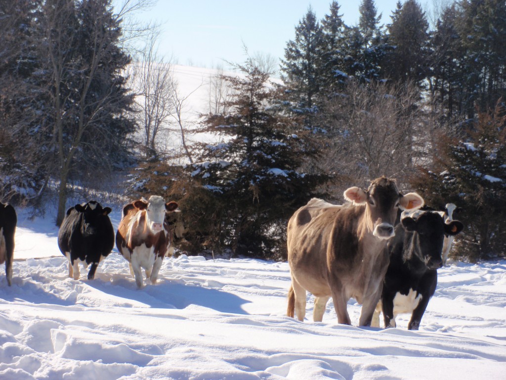 The snow crunched under each footstep of the cows as we journeyed northward. We hadn’t gone too far before Tiny, our only Jersey milk cow, showed up at my side. I had stopped by the grainery before leaving the barns and put a piece of cotton-cake into my pocket. It didn’t take Tiny too long to scout me out and get that cake. As I handed her the cake, I slipped up onto her back, yep she would always let me snitch a free ride!