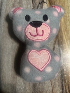 One other bear was given by Miss Deb to a super cute little girl that we have known since she was a baby. Just a tad over a yearling, her blond curls and beautiful blue eyes captivate everyone she stops to visit with. Needless to say, when she stopped by Miss Deb’s booth, a pink bear jumped into her arms as well! She unzipped her pink coat, revealing a vest, right where she wanted Miss Bear to ride. After giving Miss Deb a big, beautiful smile, she and Grandma continued their shopping adventure.